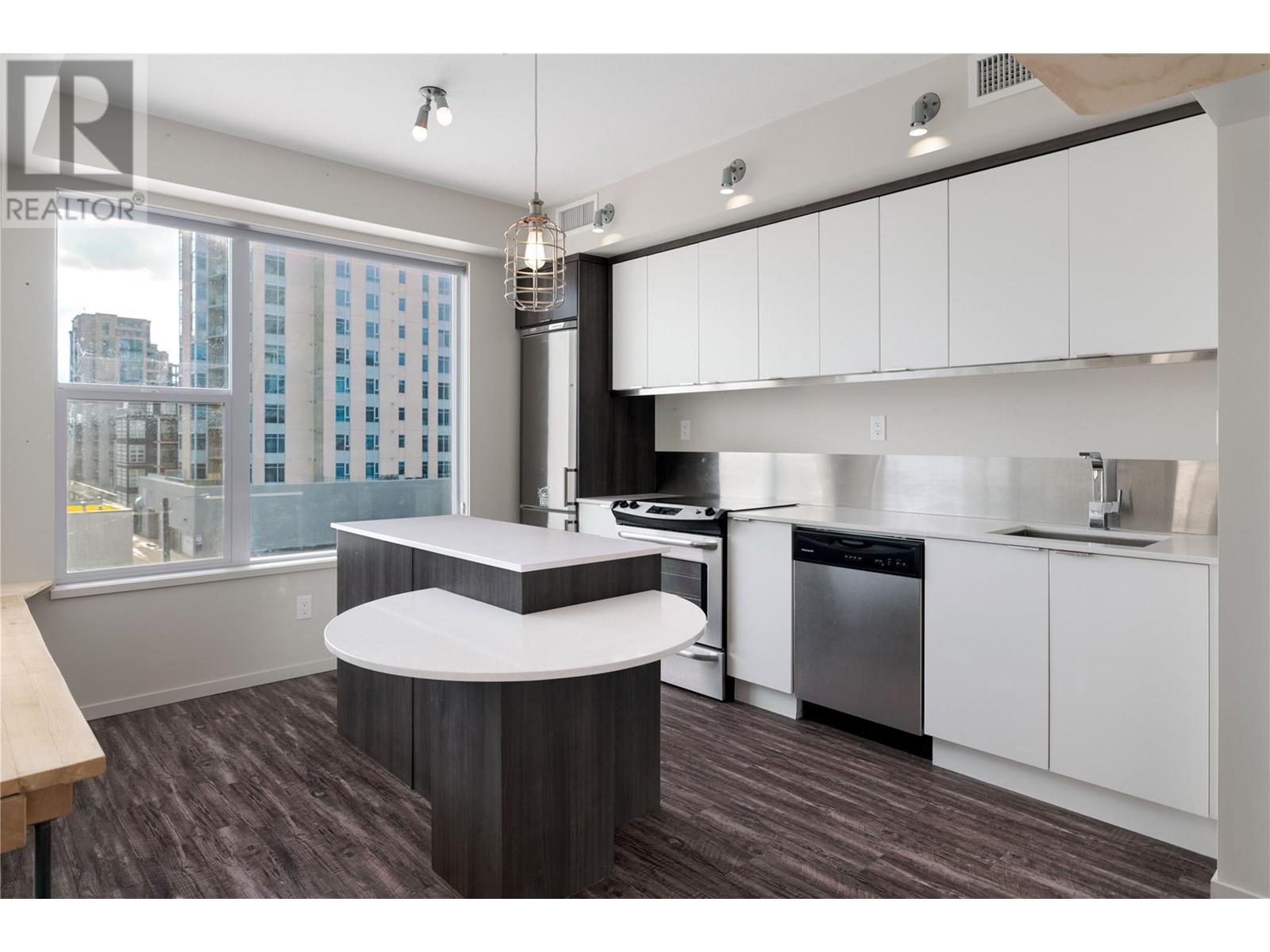 Welcome to #413 1290 St. Paul Street! Located at SOLE Kelowna – a boutique condo building in the heart of downtown – this beautiful, well appointed, 1-bedroom, 1-bathroom unit includes 655 sq. Ft of living space with a 75 sq. Ft outdoor deck. This unit features an open concept design, with natural light throughout. The kitchen is equipped with two-tone kitchen cabinets, quartz countertops, steel backsplash, custom island with built-in circular table and stainless-steel appliances. The kitchen opens onto the living room, which includes direct access to your private outdoor deck with views of the downtown core and surrounding mountains. The unit is complete with the primary bedroom, walk-in-closet, bathroom and full-size laundry room with lots of storage. Both the living room and primary bedroom feature custom built-in cabinets from California Closets with pull-out beds and loads of extra storage. The sixth floor also features an outdoor rooftop patio to bask in the warm Okanagan sun, read a book or socialize with friends. SOLE Kelowna is located just outside the Cultural District – a hub where art, creativity and history come alive. Walk to restaurants, breweries, wineries, public transit, Waterfront Boardwalk and City Park. One heated, underground parking stall and storage locker included. Rentals are allowed, with restrictions (min. 30 days) and pets are also allowed, with restrictions (not more than either two dogs or cats, or one dog and one cat). (id:4069)