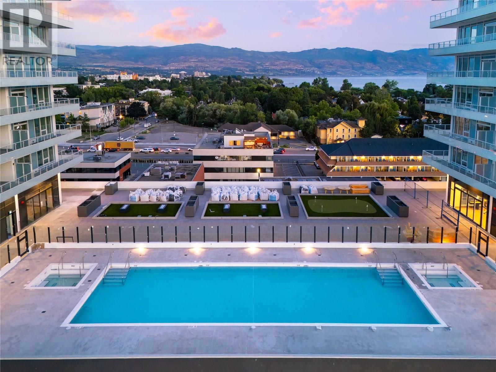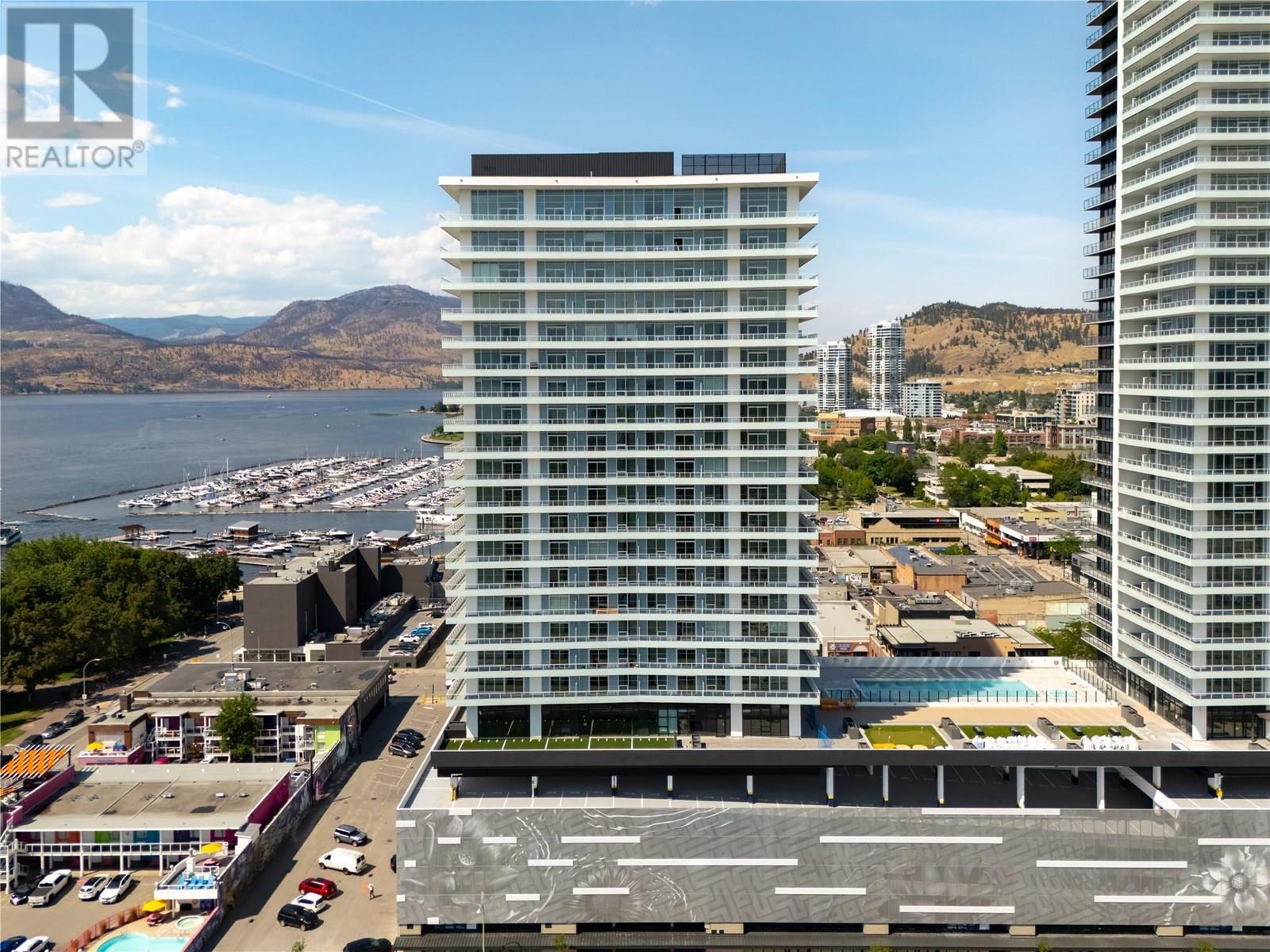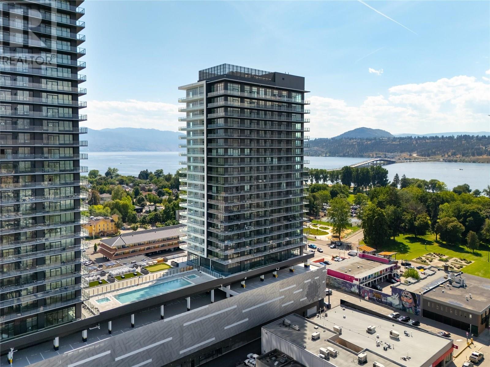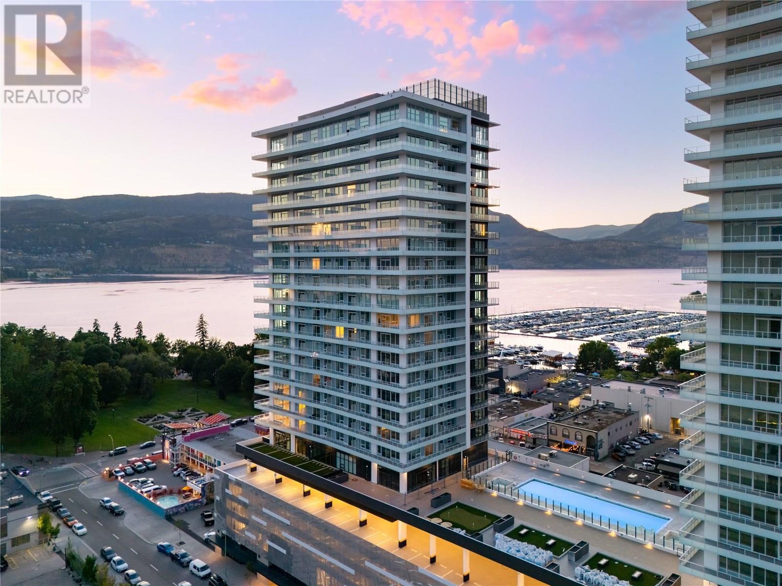 Welcome to #807 238 Leon Avenue! Water Street by the Park (WSBTP) is a brand-new development offering vacation-inspired living in the heart of downtown Kelowna. This luxurious SW facing, 3-bedroom + Den, 2-bathroom unit includes 1398 sq. Ft of living space, w/ a 500 sq. Ft wrap around balcony, offering breathtaking views of Okanagan Lake. The C1-07 floorplan is thoughtfully designed with luxury and elegance in mind and offers clean lines, bright open living space, and calming neutral colours throughout. The kitchen features premium wood cabinetry, quartz countertops, and stainless-steel Fulgor Milano appliance package, including panel ready fridge and gas range. The interior is finished with luxury vinyl plank flooring and porcelain tile. WSBTP is an amenity rich community, which features a sixth-floor “deck” that offers a peaceful retreat from the buzz of downtown Kelowna. The deck includes a heated outdoor pool, two hot tubs, sauna, steam room, fully equipped gym, outdoor BBQs, fire pit enclaves, golf simulator, putting green, yoga and spin studio, and so much more. WSBTP puts you at the centre of it all—just steps from coffee shops, restaurants, breweries, wineries, shopping, public transit, City Park, and the Waterfront Boardwalk. One parking stall included. No storage locker. Rentals are allowed, with restrictions (min. 30 days) and pets are also allowed, with restrictions (up to two dogs; or 2 cats; or one dog and one cat). GST is inclusive of the purchase price. (id:4069)