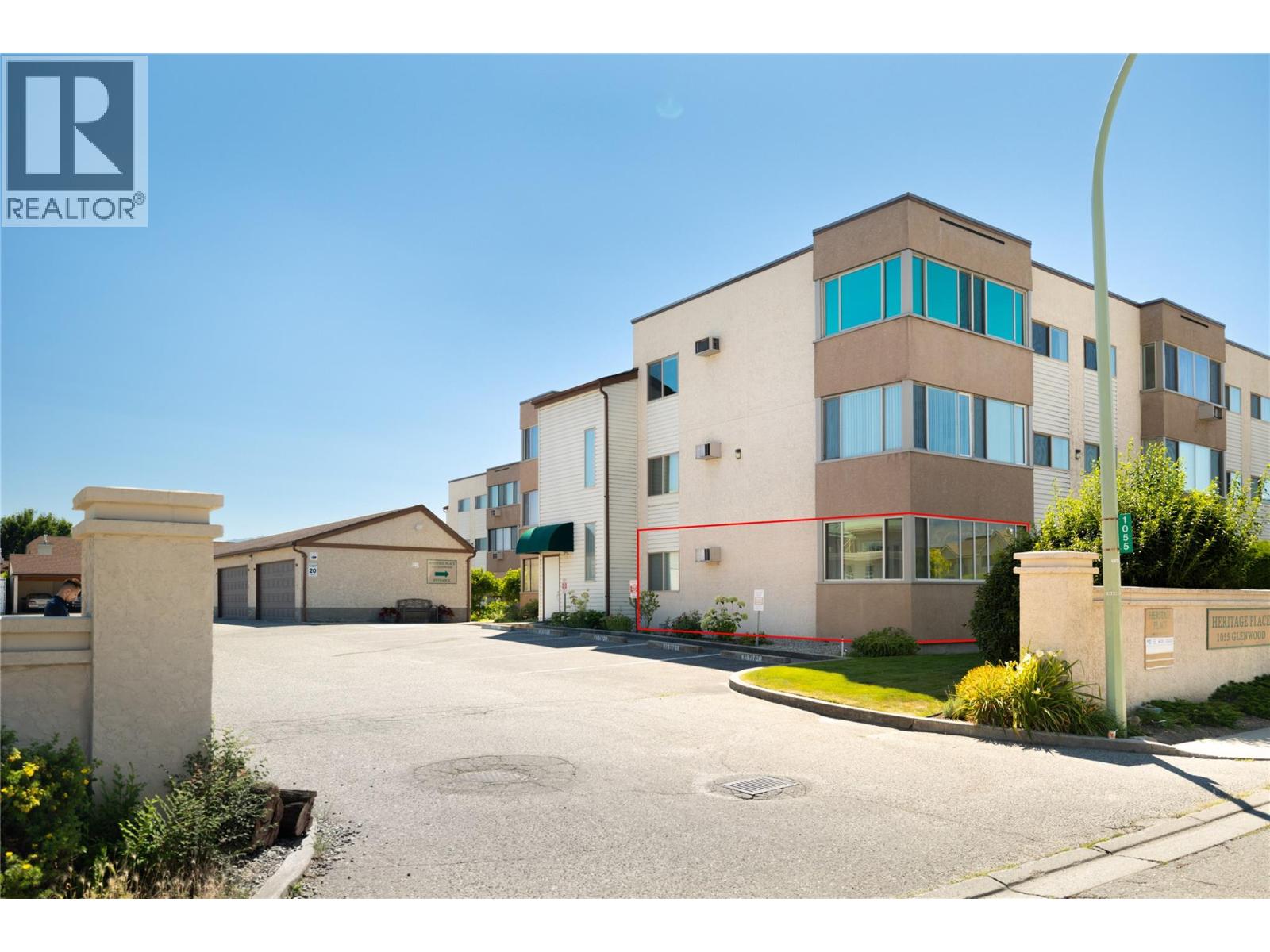 Welcome to #109 1055 Glenwood Avenue! Located at Heritage Place in Kelowna South – a prime location for lakeshore living and community – this beautiful, well appointed, 2-bedroom, 2-bathroom, ground floor corner unit, includes 1075 sq. Ft of living space, with a 125 sq. Ft, fully enclosed and insulated sunroom. This unit features a retro kitchen design, with solid wood cabinetry, tile backsplash, and brand new stainless-steel appliances. The kitchen flows seamlessly into the dining room and living room with direct access to the fully enclosed and insulated sunroom. Down the hall is the primary bedroom, with walk in closet and en-suite. The unit is complete with a second bedroom, bathroom and full-size laundry room. One garage parking stall and storage locker included. Kelowna South is located just outside of the downtown core with direct access to shopping, restaurants, beaches, public transit and the hospital. Heritage Place is a ""Housing Society"" and is owned by First Gospel Church. The monthly maintenance fee is $550 per month, which includes property taxes for those age 65+ [basic cable, water, sewer, hydro (Fortis Electricity), garbage, snow removal, insurance, and general maintenance]. Please note, members under the age of 65 pay an additional $250 per year for property taxes. 55+ only. No rentals. No pets. No financing available, cash only. (id:4069)