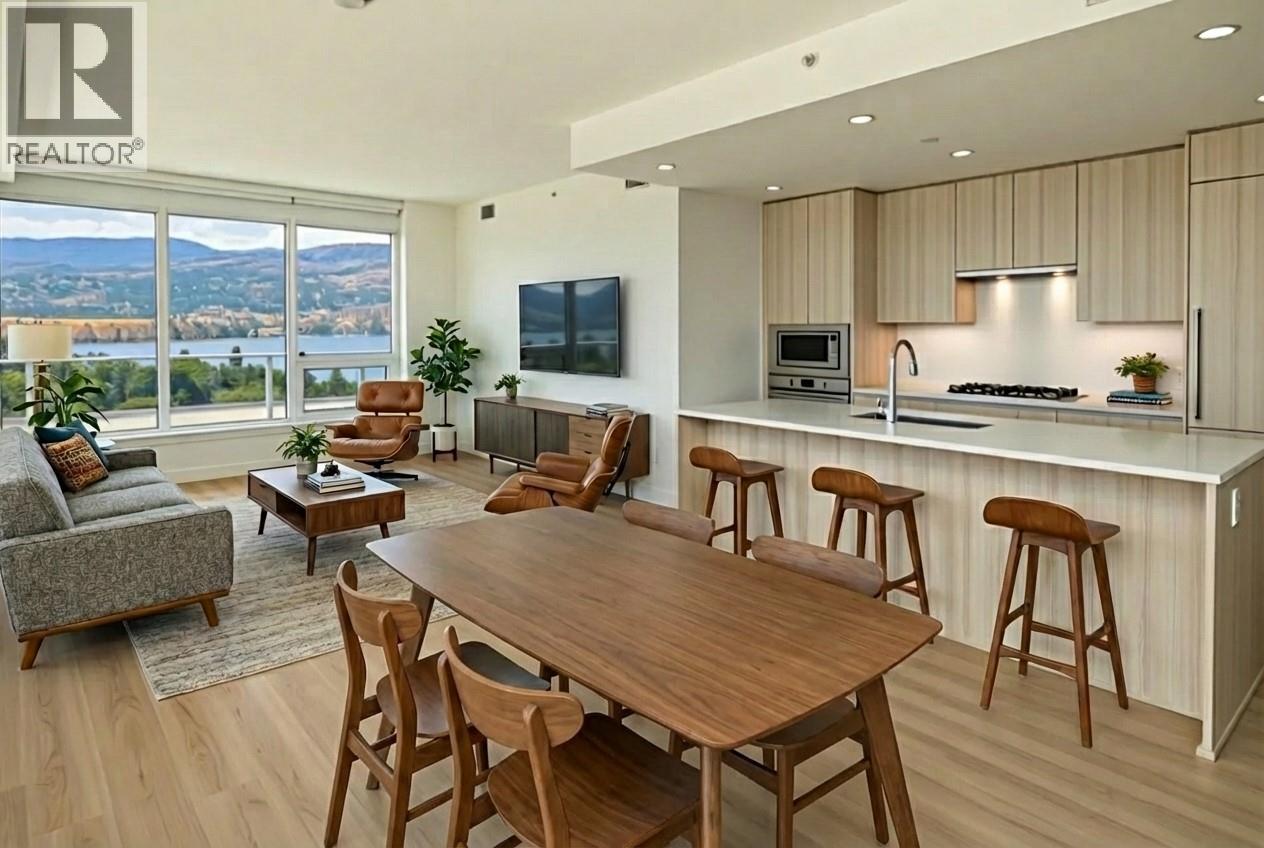 Welcome to #807 238 Leon Avenue! Water Street by the Park (WSBTP) is a brand-new development offering vacation-inspired living in the heart of downtown Kelowna. This luxurious SW facing, 3-bedroom + Den, 2-bathroom unit includes 1398 sq. Ft of living space, w/ a 500 sq. Ft wrap around balcony, offering breathtaking views of Okanagan Lake. The C1-07 floorplan is thoughtfully designed with luxury and elegance in mind and offers clean lines, bright open living space, and calming neutral colours throughout. The kitchen features premium wood cabinetry, quartz countertops, and stainless-steel Fulgor Milano appliance package, including panel ready fridge and gas range. The interior is finished with luxury vinyl plank flooring and porcelain tile. WSBTP is an amenity rich community, which features a sixth-floor “deck” that offers a peaceful retreat from the buzz of downtown Kelowna. The deck includes a heated outdoor pool, two hot tubs, sauna, steam room, fully equipped gym, outdoor BBQs, fire pit enclaves, golf simulator, putting green, yoga and spin studio, and so much more. WSBTP puts you at the centre of it all—just steps from coffee shops, restaurants, breweries, wineries, shopping, public transit, City Park, and the Waterfront Boardwalk. One parking stall included. No storage locker. Rentals are allowed, with restrictions (min. 30 days) and pets are also allowed, with restrictions (up to two dogs; or 2 cats; or one dog and one cat). GST is inclusive of the purchase price. (id:4069)
